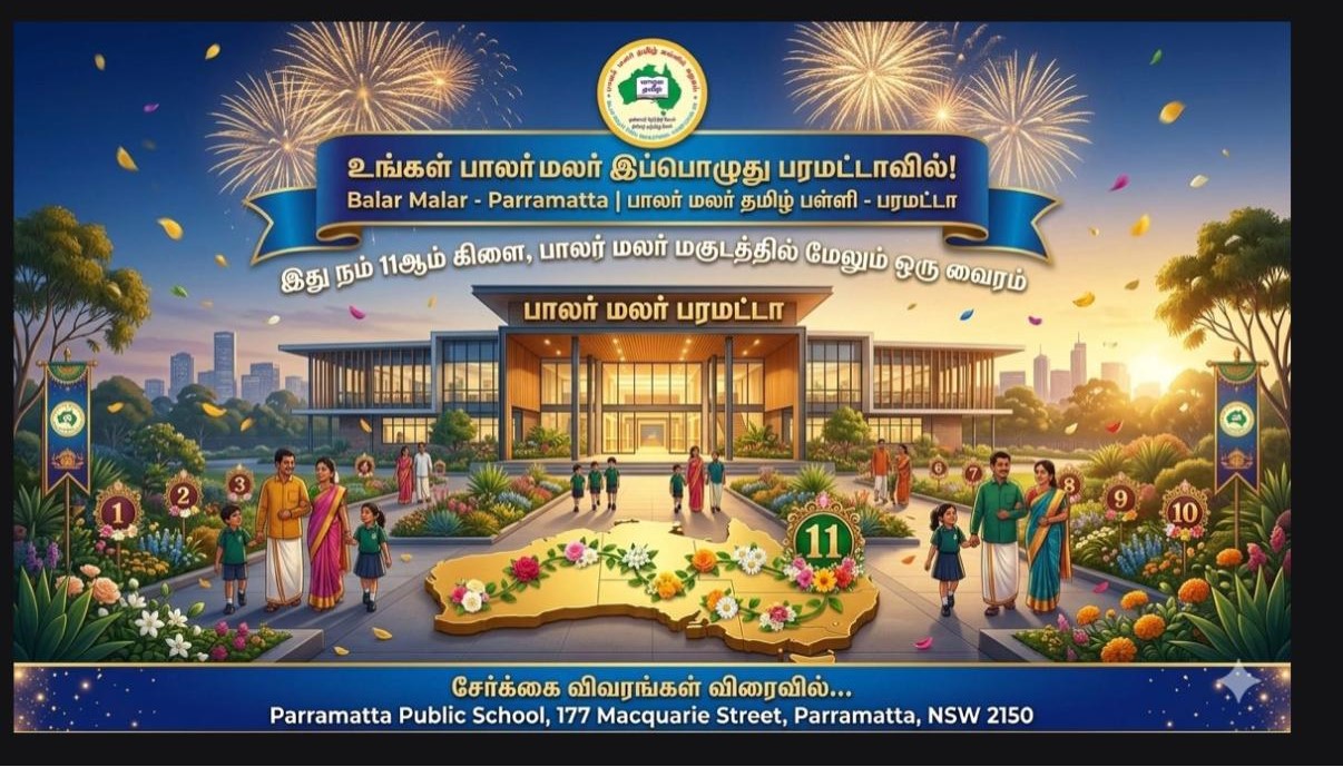 Balar Malar Tamil School is one of the pioneering Tamil community language schools in Australia. Started in 1977 as weekend Tamil learning sessions led by language enthusiasts, Balar Malar has grown steadily over the decades into a well-established network of branches across NSW, driven by volunteers and supported by the Tamil community.